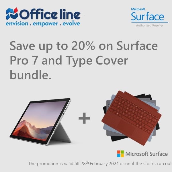 Επικοινωνήστε με έναν Σύμβουλο Τεχνολογίας της Office Line για να επωφεληθείτε της προσφοράς, ενώ περισσότερα για το Microsoft Surface Pro 7 μπορείτε να δείτε διαβάζοντας το αναλυτικό review μας ή να περάσετε μια Ιντερνετική βόλτα από το official website της Office Line.