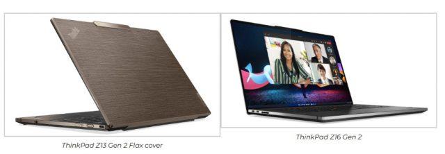 Το ThinkPad Z13 Gen 2 είναι διαθέσιμο (προαιρετικά) με ένα νέο υλικό στο επάνω κάλυμμα του, ενισχυμένο με φυσικές ίνες και κατασκευασμένο από 75% ανακυκλωμένο αλουμίνιο. Αυτό το Flex Fiber υλικό είναι κατασκευασμένο από 100% αγροτικά προϊόντα που συλλέγονται με τη συγκομιδή φυτικών ινών.