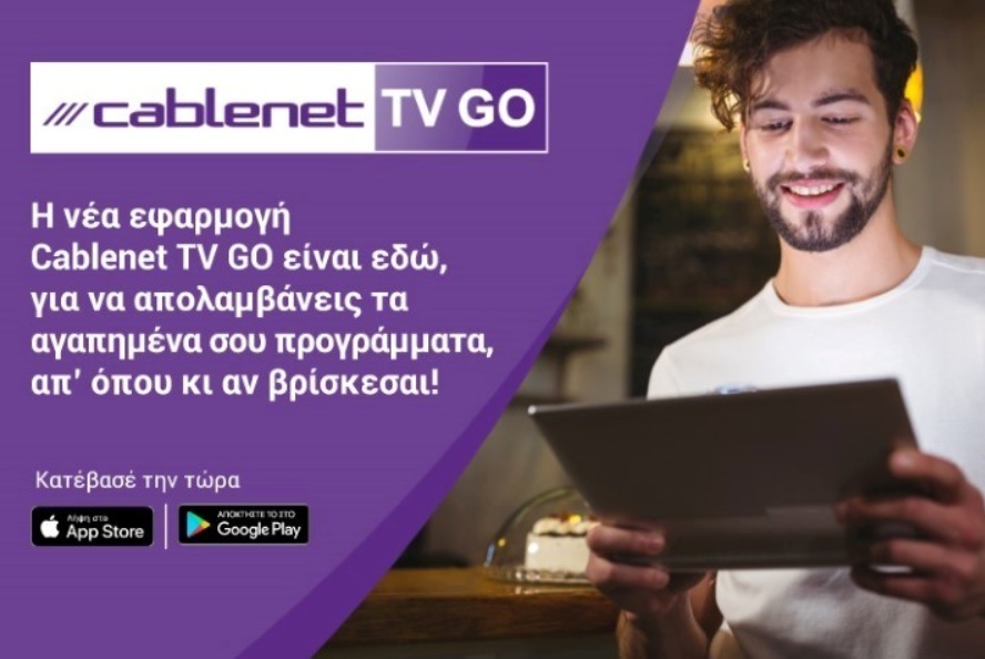 Η εφαρμογή Cablenet TV GO είναι διαθέσιμη από το App Store και το Google Play για τους Συνδρομητές της Υπηρεσίας Τηλεόρασης που έχουν επιλέξει ένα από τα πακέτα Variety TV, Variety Xtra TV ή Complete TV.