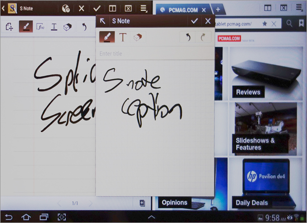 Το ίδιο θα κάνουμε δοκιμάζοντας τις δύο εφαρμογές, το S Note και το Photoshop Touch που υποτίθεται ότι αξιοποιούν το μέγιστο της χρήσης του S Pen. Διαβάζοντας το Verge, επισημαίνουν πως οι εφαρμογές αυτές είναι καλές, αλλά δεν είναι οι καλύτερες που θα μπορούσαν να κάνουν κάποιον να ξετρελαθεί με την χρήση του S Pen. Υποσημείωση; Δεν καταλαβαίνουμε γιατί πρέπει να πωλείται ξεχωριστά το S Pen, εφόσον είναι ένα από τα κύρια χαρακτηριστικά του tablet. Δεν είναι η πρώτη φορά που το βλέπουμε αυτό, αλλά εξακολουθεί και είναι ακατανόητο.