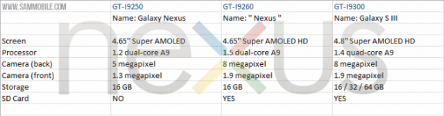 Με τον κωδικό GT-i9260 και το “Nexus” δίπλα, ο πίνακας εμφανίζει κάποια χαρακτηριστικά της νέας συσκευής, η οποία παρουσιάζεται να έχει οθόνη στις ίδιες ίντσες (4,65) με τον προκάτοχό της, αλλά διπύρηνο επεξεργαστή χρονισμένο τώρα στο 1.5GHz, οπίσθια κάμερα 8MPixels και εμπρόσθια στο 1.9MPixels (στα πρότυπα του Samsung Galaxy S III). Αναφέρεται επίσης ότι η νέα πρόταση θα διαθέτει microSD card και αποθηκευτικό χώρο 16GB. Όπως φαίνεται, οι αλλαγές δεν είναι εκτεταμένες, με τη συσκευή να αποτελεί μία απλώς αναβαθμισμένη έκδοση του προηγούμενου Nexus της Samsung μαζί με κάποια χαρακτηριστικά από… Galaxy S III.