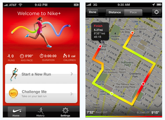 – Challenge Yourself (Αναμέτρηση με τον Εαυτό σας): Μέσω του πλήκτρου “Challenge Me” οι δρομείς μπορούν να επιλέξουν να τρέξουν μακρύτερα, γρηγορότερα, για περισσότερη ώρα. Η εφαρμογή καταγράφει επίσης στοιχεία στο ιστορικό σας ώστε να μπορείτε να προσαρμόζετε τις αναμετρήσεις σύμφωνα με τις προτιμήσεις σας. Οι δρομείς, αφού ολοκληρώσουν τη διαδρομή τους, λαμβάνουν επίσης ανταποκρίσεις και ενθαρρυντικά σχόλια από αθλητές της Nike και διασημότητες όπως οι Lance Armstrong, Paula Radcliffe και η κωμική ηθοποιός Tracy Morgan.