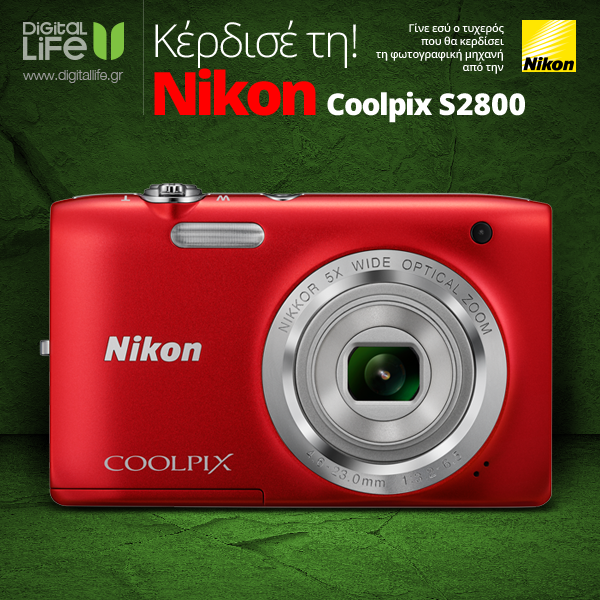 Ο νέος μας εορταστικός διαγωνισμός σας προσφέρει μία ψηφιακή φωτογραφική μηχανή Nikon COOLPIX S2800, προσφορά της εταιρείας ΔΑΜΚΑΛΙΔΗΣ.