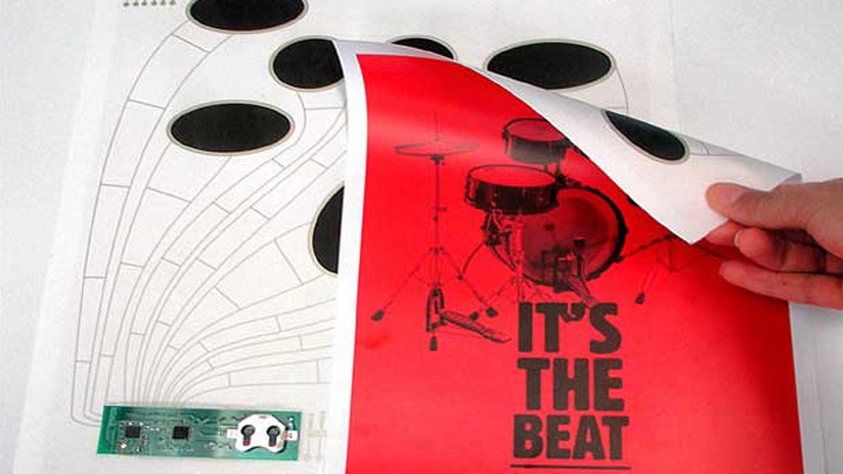 Το πρώτο τους εγχείρημα είναι ένα διαδραστικό πόστερ, το οποίο μπορεί δυνητικά να λειτουργεί ως drum kit. Μπορεί να παράγει έως 7 (!) διαφορετικούς ήχους, επιτρέποντάς σας να συνθέσετε τους αγαπημένους σας ρυθμούς ή να προσθέσετε τα δικά σας “χτυπήματα” σε μουσικές που ήδη παίζουν. Χρησιμοποιώντας την printed-touch τεχνολογία, μπορείτε να έχετε εύκολη πρόσβαση σε ένα drum-kit επτά κομματιών, χωρίς καν να χρειάζεστε sticks.