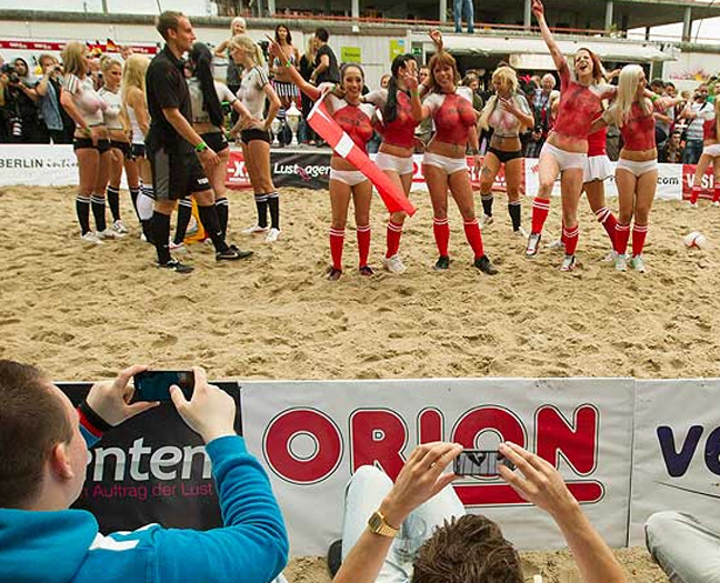 Το παιχνίδι ανάμεσα σε Δανία και Γερμανία ήταν σε γενικές γραμμές ανιαρό. Το θέαμα ήταν μάλλον φτωχό και οι δύο ομάδες δεν έλαμψαν ακριβώς με την απόδοσή τους. Καμία σχέση δηλαδή με τον αγώνα beach soccer πάλι ανάμεσα σε Δανία και Γερμανία αλλά αυτή τη φορά με τη συμμετοχή… πορνοστάρ!