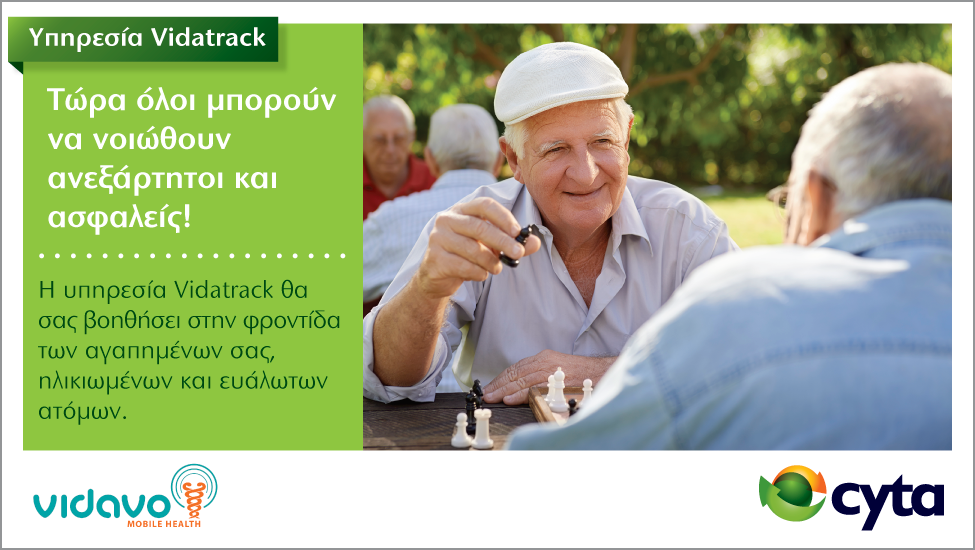 Σημειώνεται ότι το Vidatrack είναι μια προηγμένη υπηρεσία τηλεφροντίδας που αξιοποιεί την τεχνολογία για να διευκολύνει τον εντοπισμό ελλειπόντων ή ατόμων που βρίσκονται σε κίνδυνο, μέσω συσκευής εντοπισμού, η οποία μπορεί επιπρόσθετα να αποστέλλει σήμα sos, σήμα σε περίπτωση πτώσης στο έδαφος, αλλά και να λειτουργεί ως απλοποιημένη τηλεφωνική συσκευή.