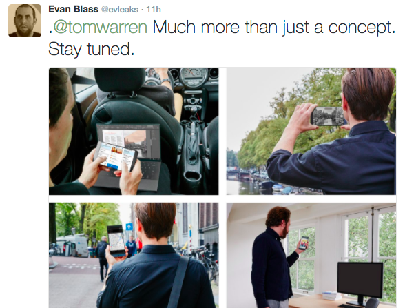 Όταν ένας γνωστός δημοσιογράφος τεχνολογίας (Tom Warren από το The Verge, ειδικός σε θέματα Microsoft) του έγραψε ότι αυτό είναι ένα ωραίο concept αλλά τίποτα περισσότερο, τουίταρε περισσότερες φωτό από το ίδιο smartphone και σε κάποιες lifestyle λήψεις, συμπληρώνοντας:”Πολλά περισσότερα από ένα concept. Μείνετε συντονισμένοι”.