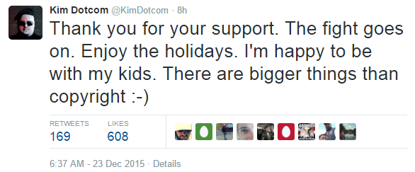 Αντιμετωπίζει κατηγορίες μεταξύ άλλων για εκβιασμούς και ξέπλυμα χρήματος, πέραν φυσικά από την παραβίαση του νόμου περί πνευματικών δικαιωμάτων, με το BBC να αναφέρει ότι οφείλει στις εγχώριες αρχές το ποσό των 500 εκατ. δολαρίων. Η νομική ομάδα του θα ασκήσει πάντως έφεση για την υπόθεση, ενώ ο 41χρονος Γερμανός, το πραγματικό όνομα του οποίου είναι Kim Schmitz, έγραψε μεταξύ άλλων στο twitter ότι “η μάχη συνεχίζεται” και είναι “χαρούμενος που βρίσκεται με τα παιδιά του”, καθώς υπάρχουν “σημαντικότερα ζητήματα από το copyright”.