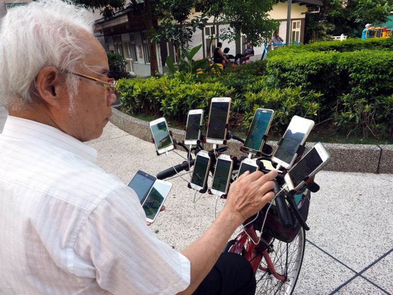 Αυτός ο παππούς έχει προσαρμόσει 11 smartphones στο ποδήλατό του, ώστε να μπορεί να “κυνηγά” με αυτά τα αγαπημένα του Pokemon.
