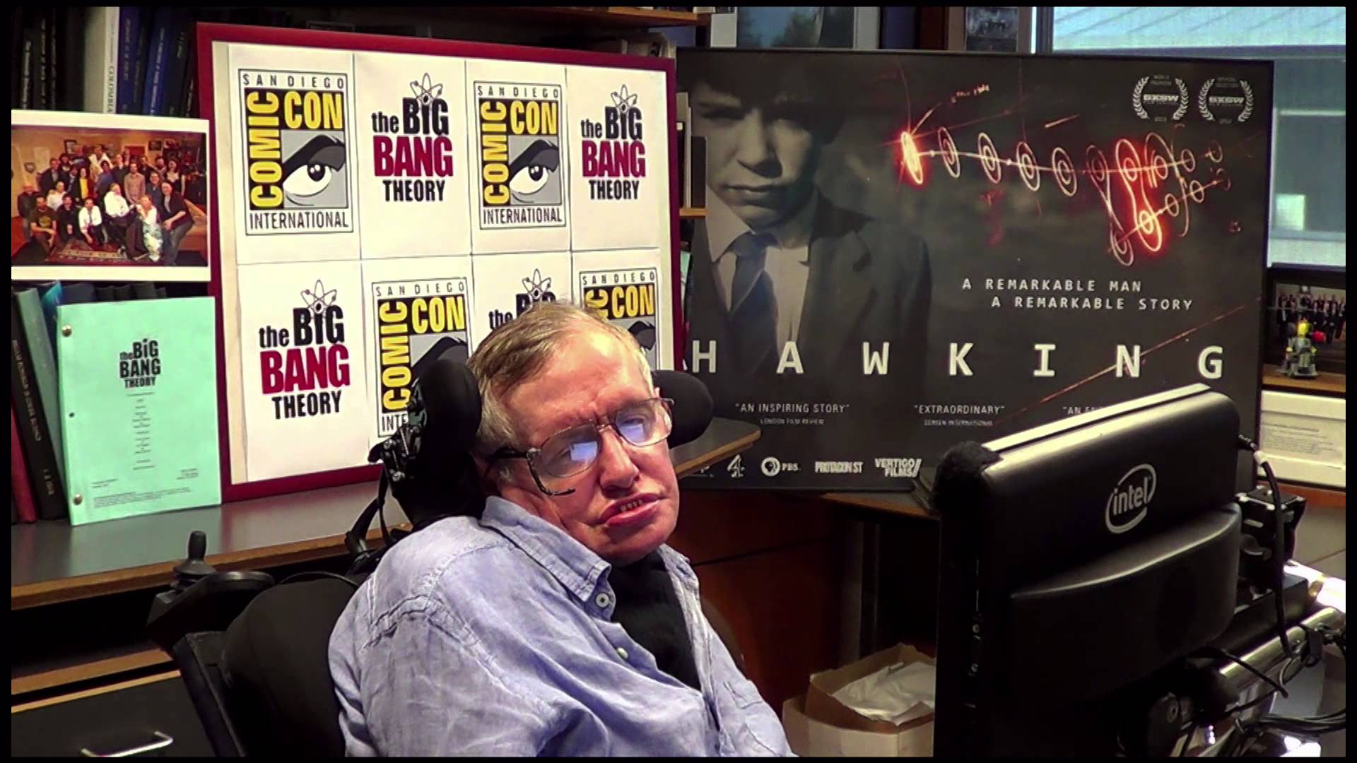 O Stephen Hawking έκανε μία εμφάνιση έκπληξη στο πάνελ του The Big Bang Theory στο San Diego Comic-Con, ξεκινώντας το event με ένα προηχογραφημένο μήνυμα από το γραφείο του. Ο ήρωας του Sheldon Cooper, που έχει εμφανιστεί μάλιστα παλιότερα στο πολύ επιτυχημένο sitcom, ζήτησε συγνώμη που δεν μπορούσε να βρίσκεται εκεί γιατί τον έπιασε λάστιχο (“That was a joke. Ha ha!”).
