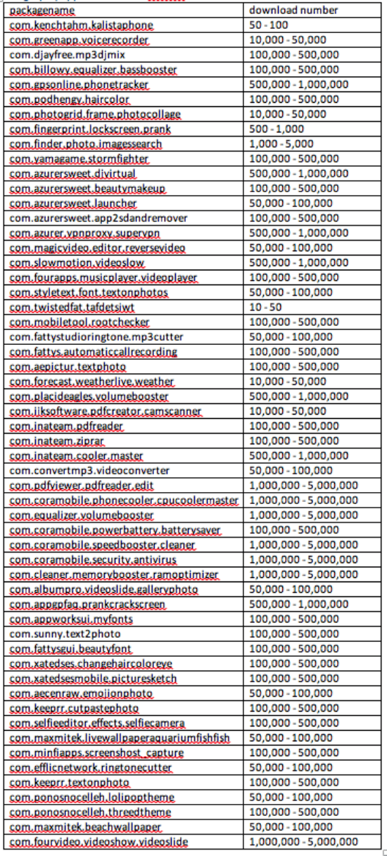 Ορισμένες από τις από 50 εφαρμογές του Google Play που περιέχουν το adware έχουν πάνω από ένα εκατομμύριο λήψεις. Συνολικά, ο αριθμός λήψεων αυξάνεται στις περίπου 55 εκατομμύρια λήψεις.