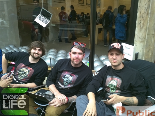 Ο σχολιασμός από Αθήνα: Οι φίλοι που βρίσκονται πρώτοι στην ουρά, ίσως προς το παρόν να συγκεντρώνουν περισσότερο ενδιαφέρον από τους περαστικούς, ακόμα και από την ίδια την συσκευή που περιμένουν όλοι.