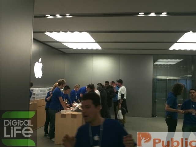 Η κατάσταση θυμίζει πεδιο μαχης: αστυνομευση, ανθρωποι που πλακωνονται στην κυριολεξια για το ποιος ηταν πρωτος στη σειρα, αγοροπωλησιες θεσεων και εγω απο αποσταση να παρακολουθω τα τεκταινομενα. Και που να εβγαινε το iPhone 5…