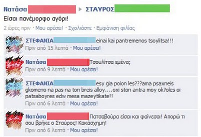 H παρακάτω στιχομυθία εμφανίστηκε στον τοίχο του Σταύρου στο facebook. Η Νατάσα, ήθελε να κάνει ένα κομπλιμέντο στον Σταύρο και το δημοσίευσε στον τοίχο του.