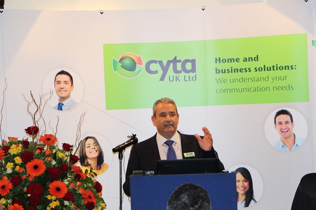Ο Πρόεδρος της Cyta UK και Αναπληρωτής Ανώτατος Εκτελεστικός Διευθυντής της Cyta Κύπρου, κ. Μιχάλης Αχιλλέως, μιλώντας στο πλαίσιο της εκδήλωσης, τόνισε ότι παρά το σκληρό και ανταγωνιστικό περιβάλλον στο οποίο δραστηριοποιείται η Cyta UK, βελτιώνει συνεχώς τις υπηρεσίες της και εμπλουτίζει το χαρτοφυλάκιο των προϊόντων που προσφέρει. Ο κ. Αχιλλέως τόνισε επίσης ότι, σε μια αγορά που κυρίως η εξυπηρέτηση γίνεται απρόσωπα από τηλεφωνικά κέντρα ή ανώνυμα μέσω διαδικτύου, η Cyta UK προσφέρει προσωπική εξυπηρέτηση, τόσο στα ελληνικά, όσο και στα αγγλικά. Έντεκα χρόνια μετά την έναρξη των εργασιών της στη Βρετανία, η Cyta UK είναι έτοιμη να κάνει το επιπλέον βήμα, προσφέροντας επιχειρηματικά προϊόντα και πέραν της παροικίας στην ευρύτερη βρετανική αγορά. Ο κ. Αχιλλέως ζήτησε τη στήριξη της Παροικίας, όχι γιατί πρόκειται για μια κυπριακή εταιρεία, αλλά γιατί πρόκειται για μια καλή εταιρεία, την οποία μπορούμε να εμπιστευτούμε.
