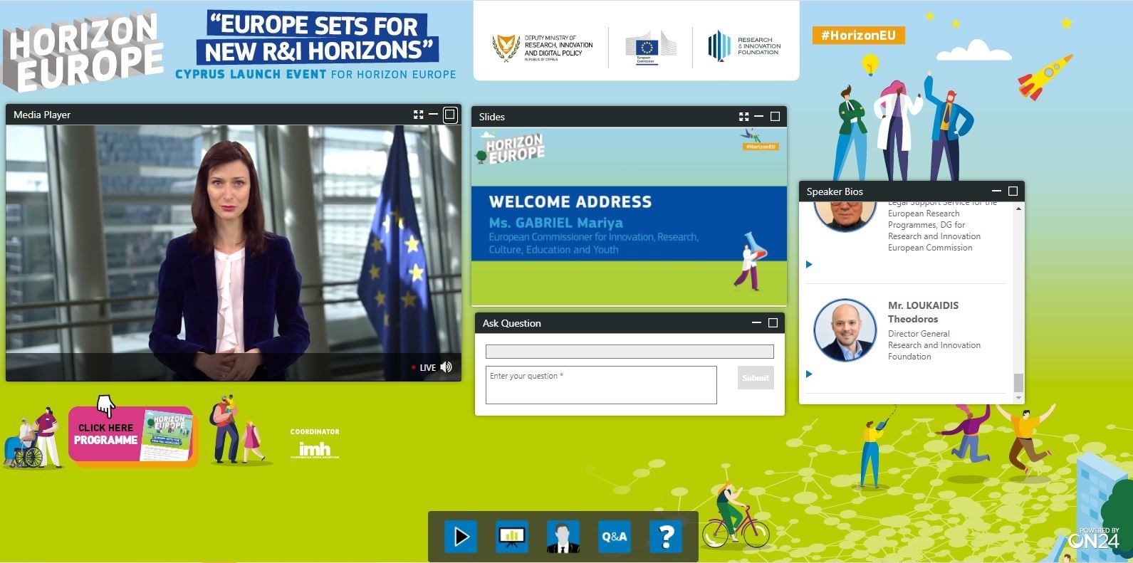Η εκδήλωση σηματοδότησε την επίσημη έναρξη του προγράμματος Horizon Europe στην Κύπρο και συγκέντρωσε ομιλητές από την Ευρωπαϊκή Επιτροπή και από το εθνικό οικοσύστημα Έρευνας και Καινοτομίας, ενώ περιλάμβανε, επίσης, παρεμβάσεις πολιτικών και κυβερνητικών αξιωματούχων. Πιο συγκεκριμένα, η εκδήλωση έδωσε μια συνολική εικόνα του προγράμματος, δίνοντας έμφαση στους κύριους πυλώνες, στα νέα στοιχεία που υιοθετούνται και στους παράγοντες-κλειδιά για επιτυχία.