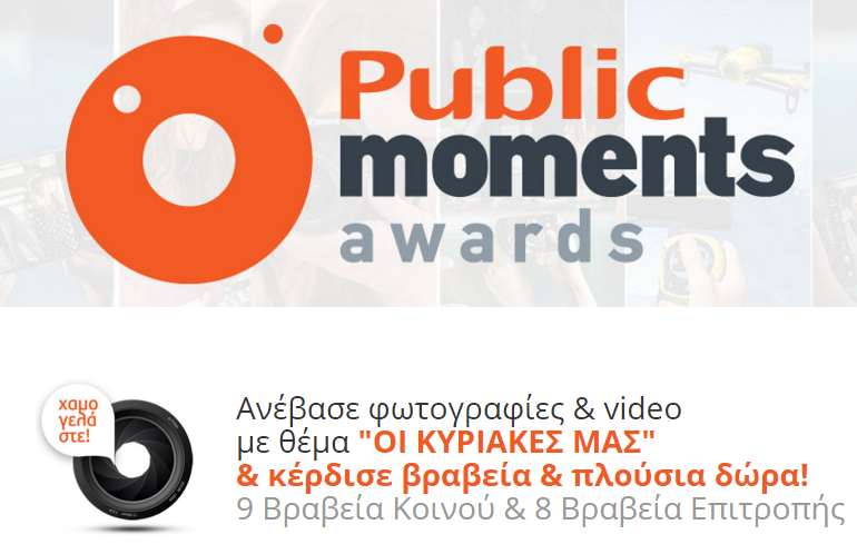 Όσον αφορά ειδικά το τελευταίο έχεις τώρα την ευκαιρία όχι μόνο να τραβήξεις μία καλή φωτογραφία αλλά και να βραβευτείς γι’ αυτό. Κι αυτό γιατί ο πρώτος ανοιχτός διαγωνισμός εικόνας Public Moments Awards είναι γεγονός και περιμένει τη συμμετοχή σου! Χρησιμοποίησε το κινητό σου ή την κάμερά σου για να καταγράψεις στιγμές από τις Κυριακές σου και μοιράσου τις στο www.publicmoments.gr. Εναλλακτικά, γύρισε ένα extreme βίντεο με την action camera σου ή με το drone σου και πάρε μέρος.