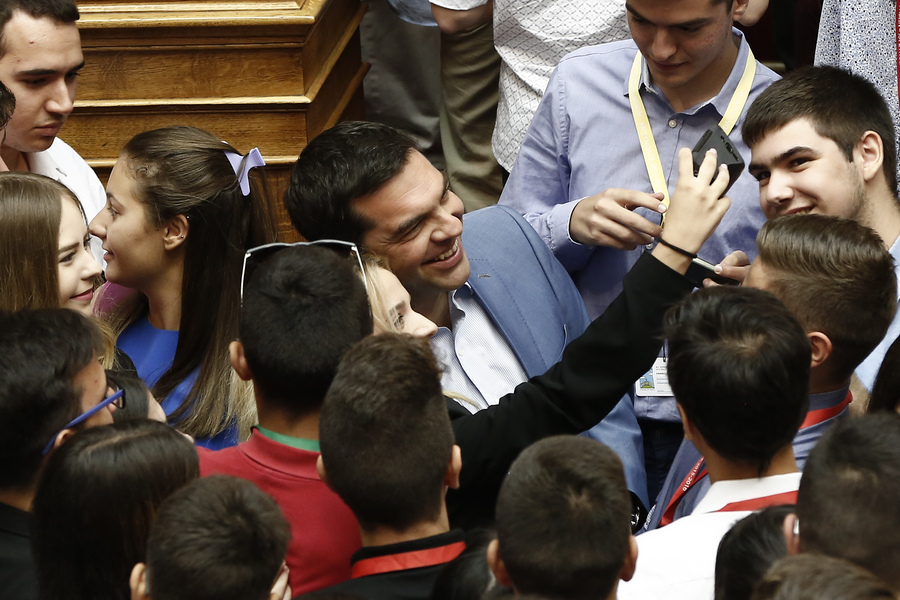 Οι πιτσιρικάδες που βρέθηκαν στην Ολομέλεια πολιόρκησαν τον Έλληνα πρωθυπουργό, ο οποίος έβγαλε ίσως τις περισσότερες σέλφι της ζωής του σε κάποιο event.