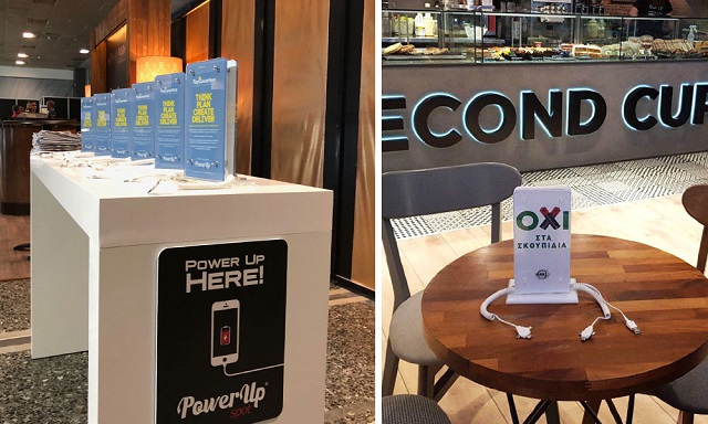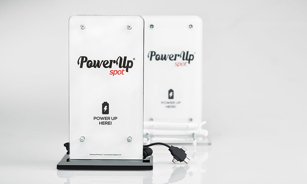 Το Power Up Spot παρουσιάστηκε στην αγορά στις αρχές του 2016, φέρνοντας μια καινοτόμο λύση στο ζήτημα της φόρτισης για κάθε επαγγελματικό χώρο, αλλά και προτείνοντας ένα νέο μέσο προβολής για τους διαφημιζόμενους.