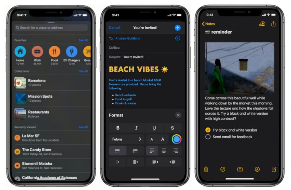 Η νέα version φέρνει αλλαγές όπως το dark mode που εγκαινιάζει ένα νέο look στο λειτουργικό, ενώ, παράλληλα, υπόσχεται ταχύτερη απόκριση και βελτιώσεις στο κομμάτι της λειτουργικότητας. Επιπλέον, συναντάμε ένα νέο swiping πληκτρολόγιο, αλλά και βελτιώσεις μεταξύ άλλων σε Apple Maps, Mail και Safari, νέα εργαλεία για φωτογραφίες και video κ.ά.