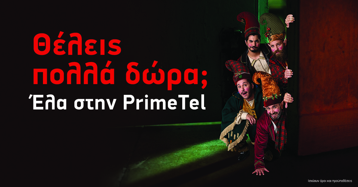 Δωροεπιταγή αξίας έως €1000 ή έκπτωση μέχρι και 50% στο μηνιαίο πάγιο με επιπλέον ΜΒ ίντερνετ κινητής τηλεφωνίας – ανάλογα με το Unlimited Πρόγραμμα – και δώρο 1 επώνυμο gadget προσφέρει φέτος τα Χριστούγεννα η PrimeTel. Πιο αναλυτικά, με την συγκεκριμένη προσφορά που ισχύει από 07/12/2018 έως τις 06/01/2019, οι πελάτες που θα συνδεθούν σε ένα από τα προγράμματα κινητής Unlimited της PrimeTel με 24μηνη δέσμευση συμβολαίου, θα αποκτούν ταυτόχρονα και μια δωροεπιταγή αξίας έως και €1000 την οποία θα μπορούν να εξαργυρώσουν αγοράζοντας προϊόντα της αρέσκειας τους από τα καταστήματα PrimeTel, Public και Telefone.