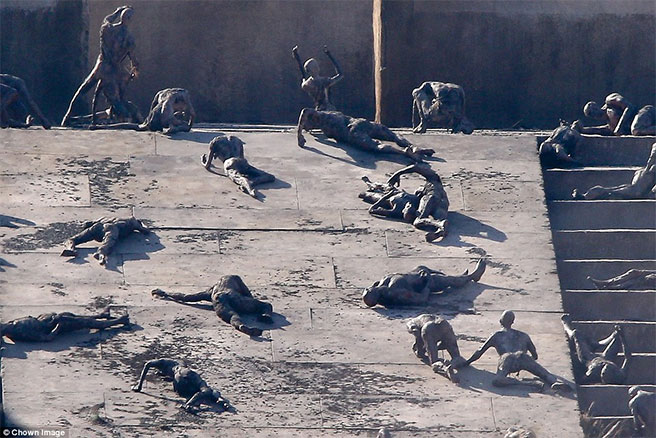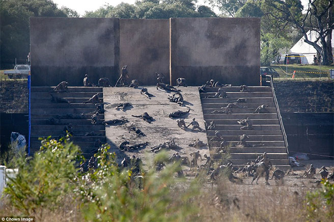 Το σετ έχει στηθεί σ’ ένα λατομείο (κανείς δεν γνωρίζει που βρίσκεται ακριβώς) και αν και προς το παρόν δεν έχουν κάνει την εμφάνισή τους οι σταρ του φιλμ όπως ο Michael Fassbender, αυτό που μπορεί να δει κανείς είναι πολλά ανθρωποειδή σώματα που μοιάζουν να έχουν γίνει πέτρινα ή να έχουν καλυφθεί από στάχτη. Στις φωτογραφίες επίσης φαίνεται ένα από τα τεράστια κεφάλια που είχαν “παίξει” και στο Prometheus.