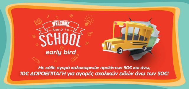 Από σήμερα μέχρι και 01/08, με αγορές άνω των 50€ σε summer fun είδη (όλα τα απαραίτητα για την παραλία, ομπρέλα, φουσκωτά, τσάντες, βιβλία) από τα καταστήματα Public και το public.gr, όλοι κερδίζουν δωροεπιταγή 10€ για αγορά σχολικών προϊόντων! Έτσι εξασφαλίζουν ξέγνοιαστες καλοκαιρινές στιγμές, ενώ τους δίνεται η δυνατότητα να αποκτήσουν ό,τι θα χρειαστούν για μια υπέροχη σχολική χρονιά σε προνομιακή τιμή.