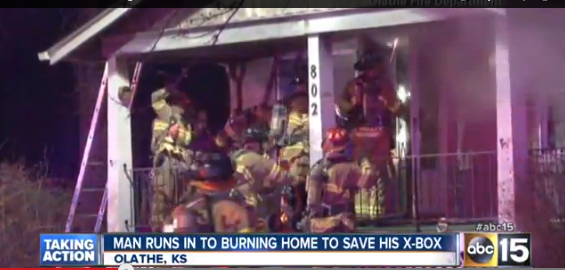Ένας άνδρας από το Kansas αποφάσισε να ξαναμπεί στο σπίτι του την ώρα που καιγόταν, μόνο και μόνο για να σώσει μία αγαπημένη του συσκευή, το Xbox του.