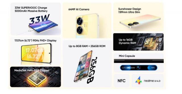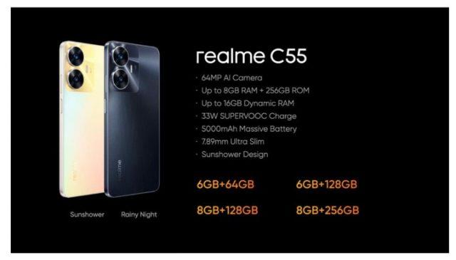Νωρίτερα αυτό το μήνα, ανακοινώθηκαν επίσημα τοι στρατηγικές αναβαθμίσεις της realme C series, οι οποίες προσφέρουν στο καταναλωτικό κοινό προϊόντα μεσαίας κατηγορίας με κορυφαία χαρακτηριστικά κατηγορία σε κάμερα, αποθήκευση, φόρτιση και σχεδιασμό. Το realme C55, που διαθέτει τις αναβαθμίσεις, προσφέρει τη μοναδική κάμερα μεγέθους 64MP στην κατηγορία της τιμής του, μαζί με selfie κάμερα 8MP και φακό B&W 2MP.