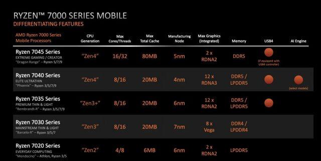 Εκτός τις παραπάνω CPUs που θα απευθύνονται στους λάτρεις του high-end gaming, η AMD έχει στα σκαριά και chips για τους… κοινούς θνητούς, όπως η σειρά 7040 που επίσης θα βασίζονται στην αρχιτεκτονική Zen 4 ή τη σειρά Zen 3+ 7035, η οποία θα προσφέρει εντυπωσιακά αποτελέσματα στο κομμάτι της ενεργειακής διαχείρισης και της αυτονομίας. Τέλος, η σειρά 7020 θα αφορά τους users που επιθυμούν να κάνουν λίγο παραπάνω οικονομία, ενσωματώνοντας Value for Money χαρακτηριστικά. Τα πρώτα laptops που θα βασίζονται στους προαναφερθέντες επεξεργαστές αναμένεται να κυκλοφορήσουν στην αγορά μετάξυ Φεβρουαρίου – Μαρτίου 2023.