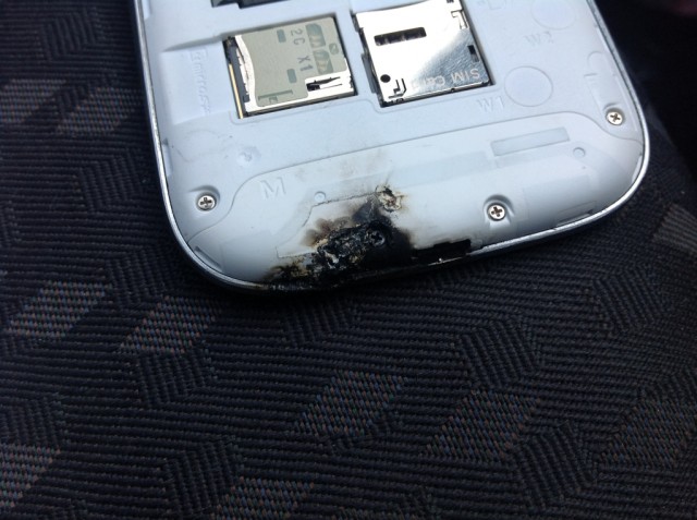 Τι νομίζατε, ότι μόνο το iPhone θα εκρήγνυται; Είναι η σειρά του Samsung Galaxy S III να μπει στο πάνθεον των γνωστών συσκευών που όλο και κάποιος θα θελήσει να εκμεταλλευτεί κάποια προβλήματα που μπορεί να προκύπτουν για να γίνει… διάσημος. Το περιστατικό συνέβη στο Δουβλίνο και όπως αναφέρει το Engadget, το smartphone έβγαλε λευκές φλόγες, όσο ο χρήστης του το είχε τοποθετημένο σε ειδική θήκη στο αυτοκίνητο ενώ, λίγο μετά, ακούστηκε μία μικρή έκρηξη που “έλιωσε” το μέρος του τηλεφώνου που βλέπετε στη φωτογραφία.