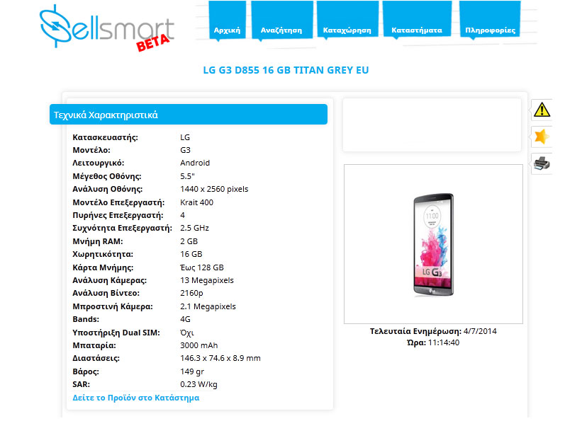 [Δ.Τ.] Η μηχανή αναζήτησης προϊόντων τεχνολογίας sellsmart.gr, μετά από 4 μήνες επιτυχημένης λειτουργίας προχωράει στην πρώτη της αναβάθμιση -αφουγκραζόμενη τις απόψεις των χρηστών της- και εμπλουτίζει τα τεχνικά χαρακτηριστικά των συσκευών κινητής τηλεφωνίας. Από σήμερα, στην κατηγορία κινητά/smartphones οι χρήστες μπορούν να ενημερώνονται για τα πλήρη τεχνικά χαρακτηριστικά της συσκευής που τους ενδιαφέρει.