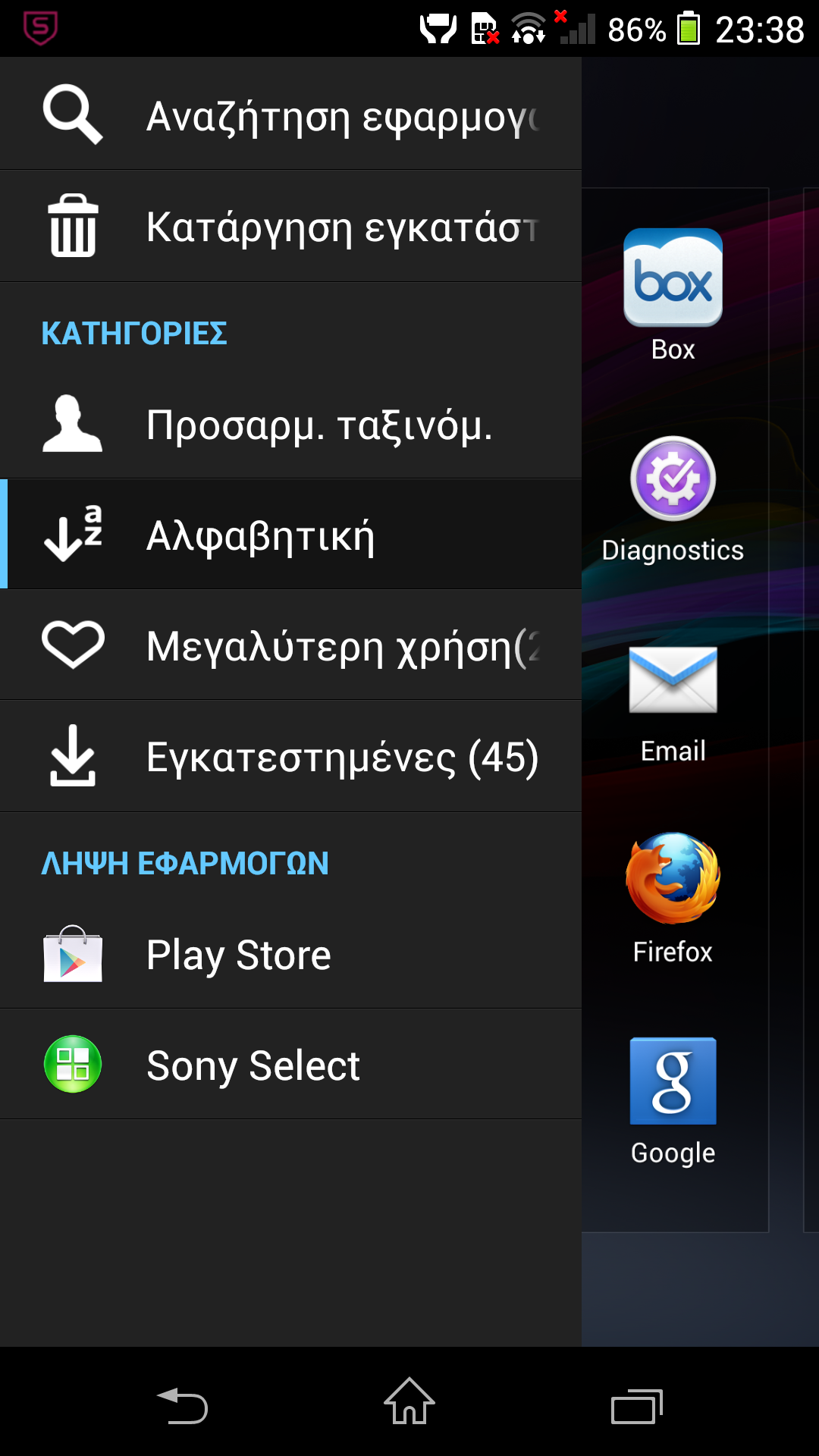 Μεταξύ άλλων, θα βρείτε τις εφαρμογές Diagnostics, Pixlr Express, Play Movies, PlayMemories Mobile, Smart Connect, Track ID, Track ID TV, Video Unlimited, Walkmate (βηματόμετρο), Xperia Link, Xperia Lounge, Xperia Privilege, Ειδήσεις και Καιρός, Ημερολόγιο, Εφαρμογή Σκίτσων, Εύκολη σύνδεση NFC, Ραδιόφωνο, Ξυπνητήρι και ρολόϊ, Σημειώσεις κ.ά.