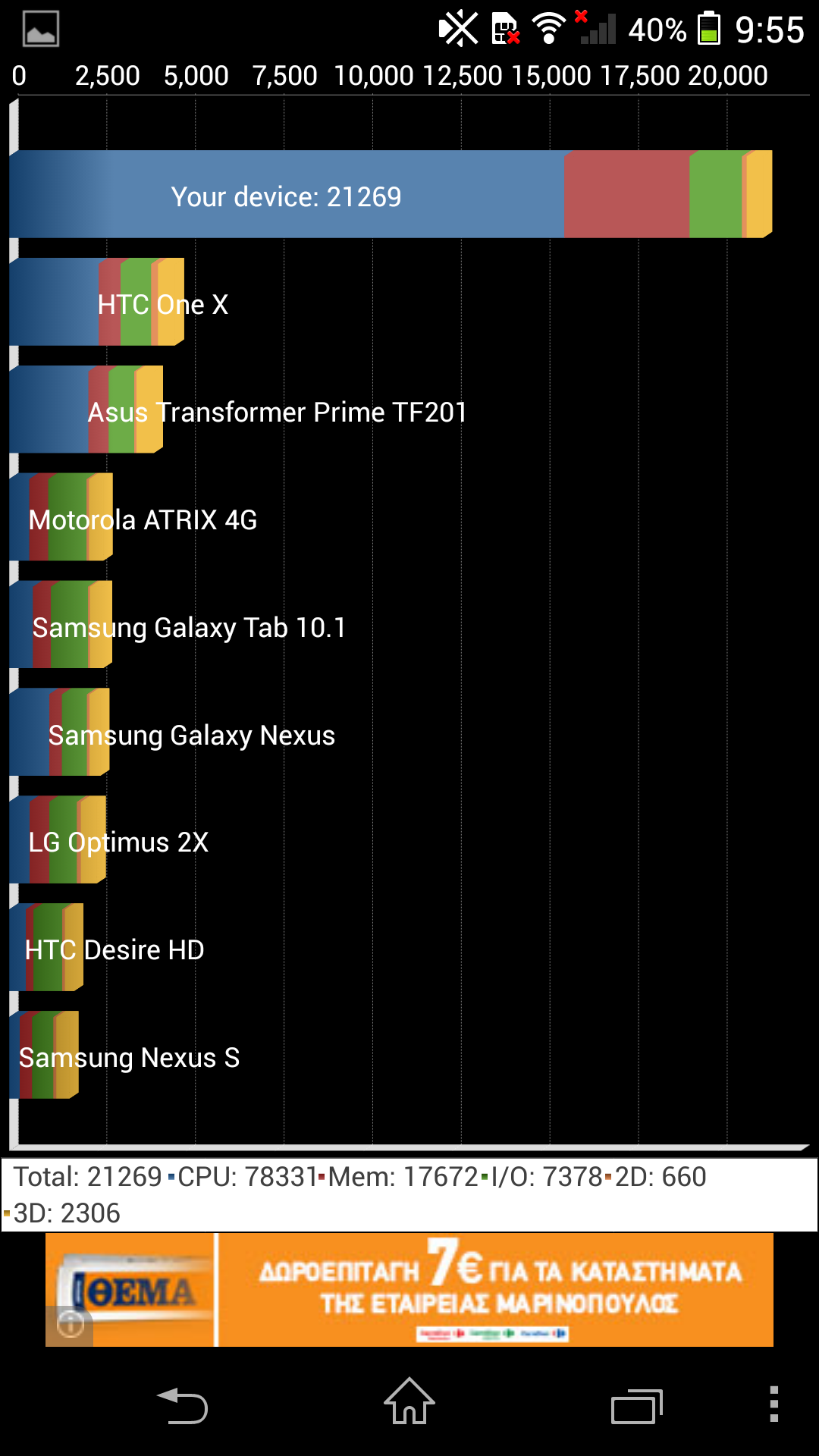 Εν’ κατακλείδι, όσο αφορά στην απόδοση, μην περιμένετε το παραμικρό ψεγάδι όταν αναπαράγετε video υψηλής ανάλυσης, όταν παίζετε παιχνίδια ή όταν πλοηγήστε στο Internet. Το κινητό είναι… σφαίρα. Update: Τα πρώτα benchmarks που έτρεξα “έβγαλαν” 17984 στο Quadrant και 32882 στο Antutu benchmark, ωστόσο τα… ξαναέτρεξα, μετά από σχετική πρόκληση αναγνώστη. Τα νέα αποτελέσματα είναι τΑ παρακάτω: