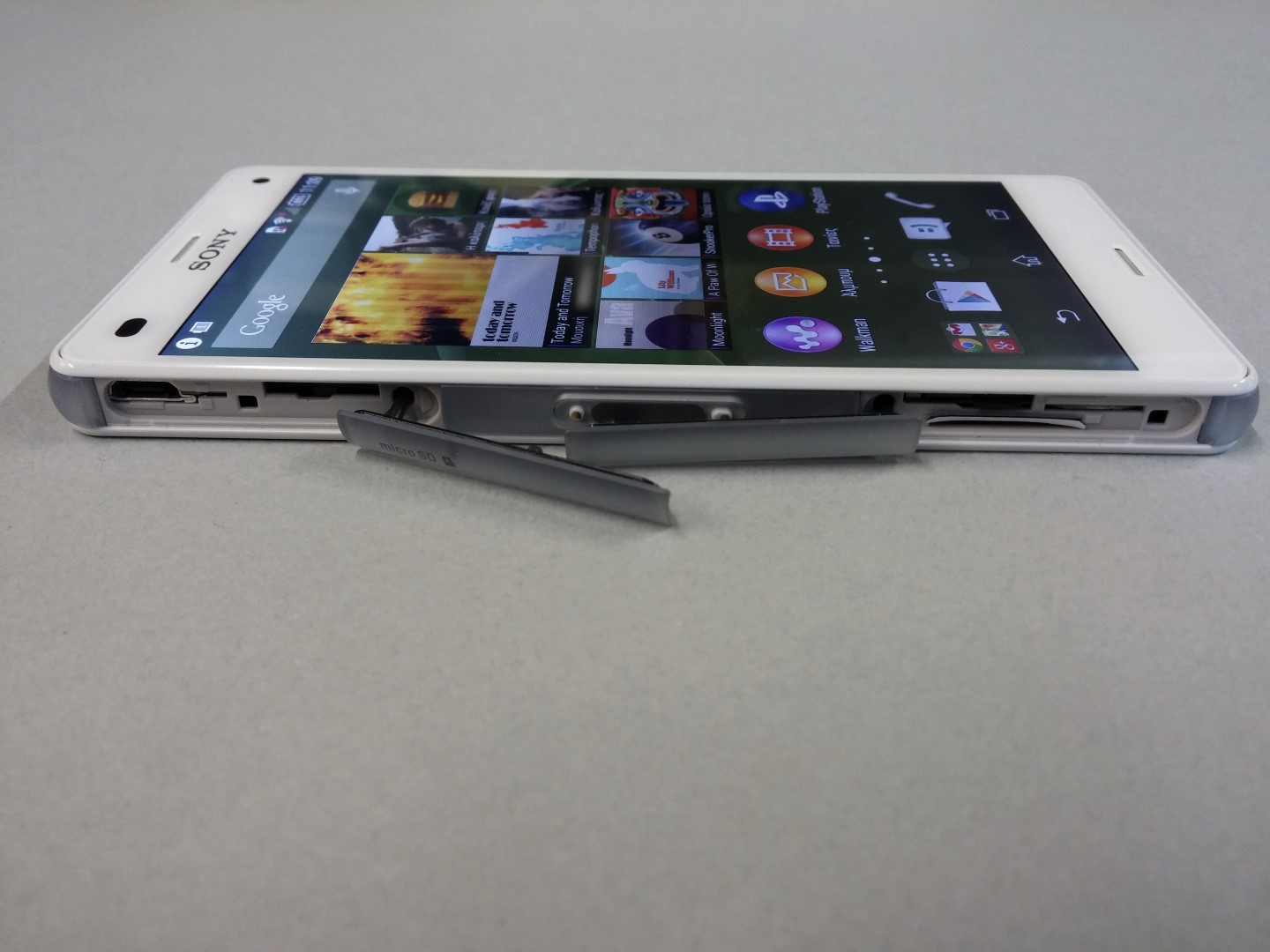 Φυσικά η συσκευή είναι αδιάβροχη, έτσι το πλαστικό διακόπτεται από δύο πορτάκια στην αριστερή πλευρά, τα οποία όμως δε χαλάνε τη «συνέχεια» του τμήματος εκείνου όταν είναι κλειστά. Στο ένα βρίσκεται η υποδοχή της nano-SIM και στο άλλο αυτή τη microSD και η microUSB θύρα. To πάχος και το βάρος του Z3 compact είναι σε χαμηλά επίπεδα και γενικότερα πρόκειται για μια πολύ…”compact” συσκευή που χωράει παντού. Η κάμερα είναι «ένα» με το πίσω μέρος ενώ τα δύο ηχεία βρίσκονται στην πρόσοψη…στο κάτω μέρος θα βρείτε επίσης μια υποδοχή για lanyards ώστε να το χρησιμοποιείτε και να το μεταφέρετε χωρίς κίνδυνο πτώσης. Αδικαιολόγητη η απουσία ακουστικών από τη συσκευασία, πάντως.
