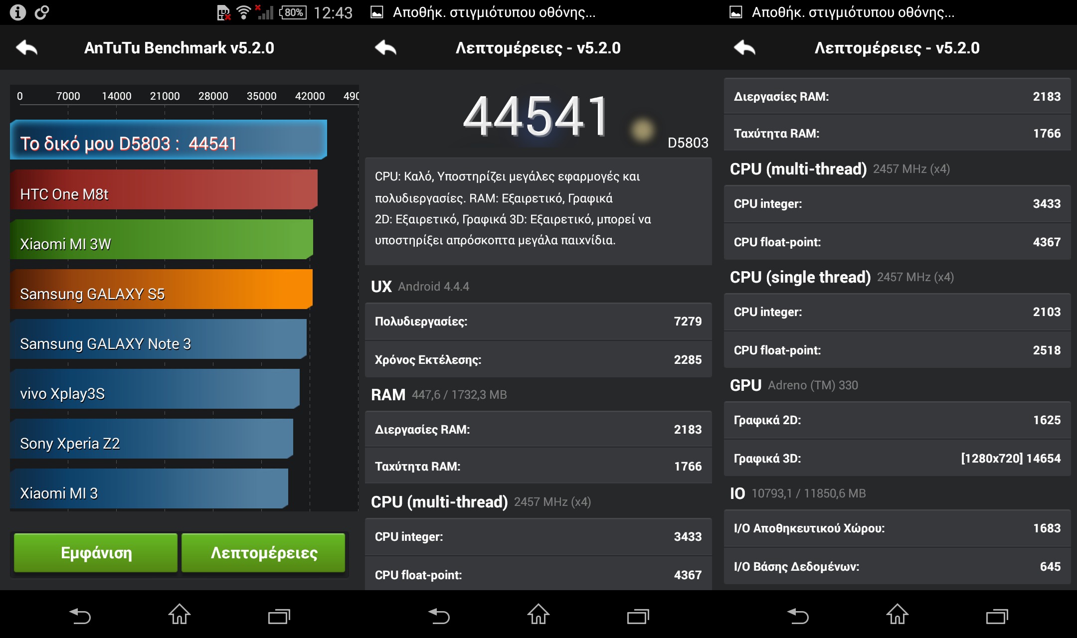 Όπως είπαμε, η Sony δε ήθελε να στερήσει σχεδόν τίποτα από το Z3 Compact, κατά τη «σμίκρυνση» του Z3. Έτσι, έχουμε άλλο ένα εξαιρετικό IPS panel, αν και με διαγώνιο «μόλις» 4,7 ιντσών, ανάλυσης 720p που είναι αρκετή για οθόνες κάτω των 5 ιντσών. Όπως θα περίμενε κανείς, Triluminos και X-Reality engine είναι εδώ για να προσφέρουν πολύ καλή ποιότητα απεικόνισης και χρωμάτων, αλλά και φωτεινότητα που επιτρέπει την άνετη χρήση υπό ήλιο. Επίσης, το saturation μπορεί να ρυθμιστεί «με το χέρι» μέσω του μενού.