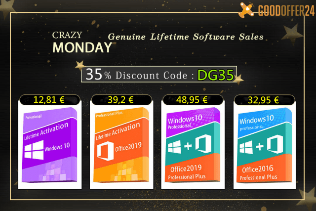 Ώρα για Cyber Monday, ώρα για εκπτώσεις: η βιτρίνα του Goodoffer24 είναι γεμάτη ευκαιρίες. Οι καλύτερες άδειες χρήσης Windows και Office είναι διαθέσιμες με ένα ειδικό κουπόνι 35%: DG35, ασυναγώνιστες τιμές και όλες τις εγγυήσεις και βοήθεια που επιτρέπουν μια θετική εμπειρία αγορών και άμεση ενεργοποίηση του λογισμικού. Μπορείτε να αγοράσετε μια άδεια χρήσης Windows 10, η οποία μπορεί να αναβαθμιστεί δωρεάν σε Windows 11, μόνο με 12 €!