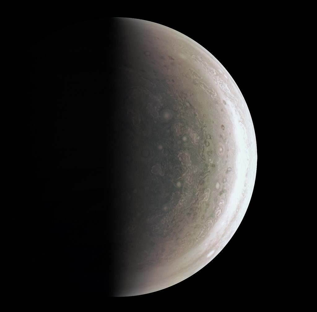 Το Juno της NASA απαθανάτισε την περιοχή του Βορείου Πόλου του πλανήτη σε ένα βίντεο δύο ωρών πριν την πιο κοντινή του προσέγγιση, που έγινε στα τέλη Αυγούστου. Βρισκόταν 120,000 μίλια μακριά, όταν η JunoCam τράβηξε αυτές τις εικόνες, όμως φαίνεται σαν να ήταν 2,600 μίλια πάνω από την επιφάνεια του Δία. Η τελευταία φορά που λάβαμε εικόνα από τον Βόρειο Πόλο του Δια ήταν το 1974.