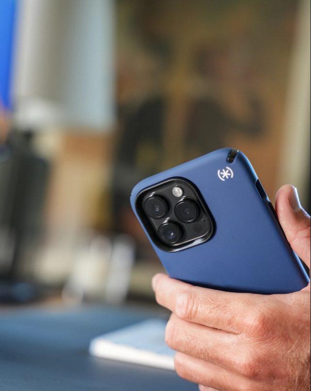 Τη σκυτάλη παίρνει η Presidio 2 Pro που είναι κατασκευασμένη από Impactium, παραμένοντας λεπτή αλλά θωρακίζοντας αποτελεσματικά στο έπακρο τη συσκευή σας (διαθέσιμη σε Black και White χρώματα). Για όσους δεν θέλουν η θήκη να κρύβει το ελκυστικό Design του 14 Pro Max τους, η Presidio Perfect Clear προσφέρει τα υψηλά επίπεδα προστασίας στα οποία μας έχει συνηθίσει η Speck, αλλά με διαφανή κατασκευή, η οποία έχει ειδική επίστρωση για να μην αποχρωματίζεται/κιτρινίζει με την πάροδο του χρόνου. Με ένα… extra twist, η Presidio Perfect Clear Ombre παραμένει διαφανής αλλά έχει μια ελαφρώς γαλαζοπράσινη απόχρωση στο κάτω μισό της, δίνοντας έναν όμορφο, χρωματικό τόνο στο iPhone σας χωρίς να κρύβει τη σχεδίασή του. Last but not… least, όλες οι Presidio θήκες που προαναφέραμε είναι συμβατές με αξεσουάρ MagSafe ενώ επιτρέπουν και την ασύρματη φόρτιση της συσκευής, χωρίς να πρέπει να τις αφαιρέσετε!