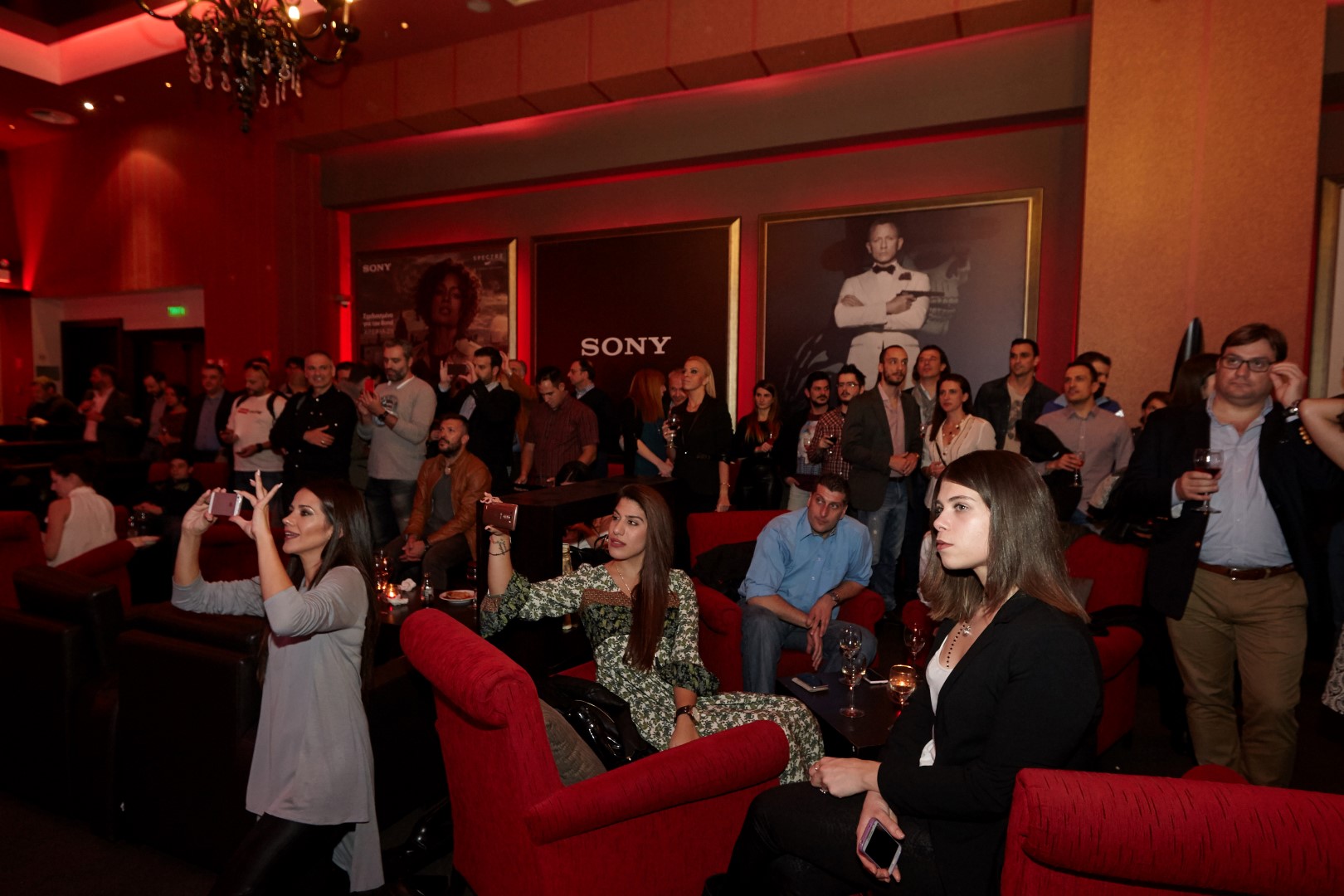 Οι καλεσμένοι είχαν την ευκαιρία να δουν από κοντά το Sony Xperia Z5, το smartphone με την καλύτερη κάμερα του κόσμου, που είναι φτιαγμένο για τον Bond. Η εκδήλωση, που έλαβε χώρα στο lobby της Gold Class στα Village Cinemas @The Mall, περιελάμβανε cocktail και live concert με τους C-REAL με αφιέρωμα σε μουσικά θέματα και τραγούδια από τις ταινίες Bond.