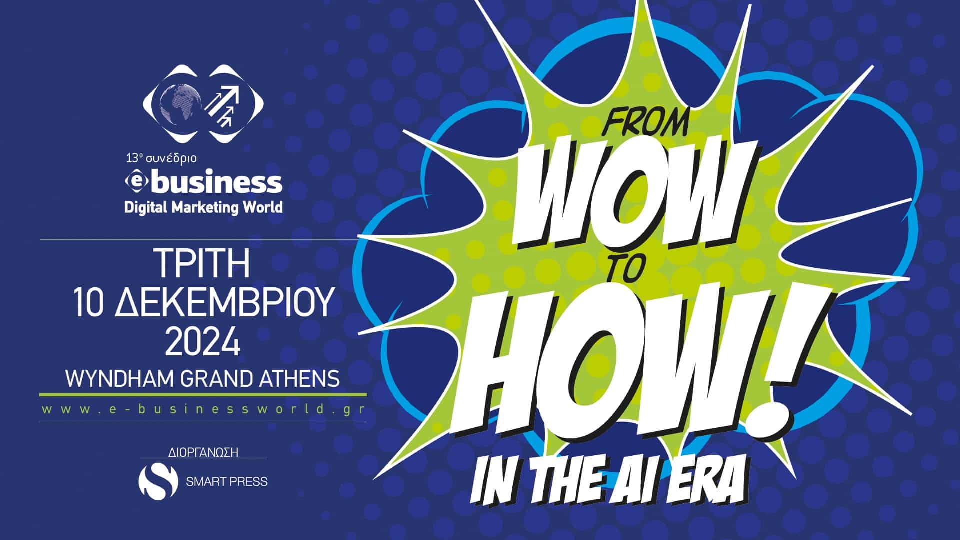 Την Τρίτη 10 Δεκεμβρίου 2024, στο ξενοδοχείο Wyndham Grand Athens, θα πραγματοποιηθεί το 13ο e-Business & Digital Marketing World 2024, με τίτλο «From WOW to HOW: e-commerce and digital marketing in the AI era». Με την υπογραφή και την αξιοπιστία της SmartPress, το συνέδριο θα αποτελέσει μια σημαντική ευκαιρία για να ανακαλύψετε τις καινοτομίες που θα διαμορφώσουν το μέλλον του e-business και του digital marketing. Ετοιμαστείτε για μια ημέρα γεμάτη έμπνευση, γνώσεις, ευκαιρίες και networking, που θα σας «εξοπλίσει» με τα εργαλεία που χρειάζεστε για να πάτε από το WOW στο HOW!