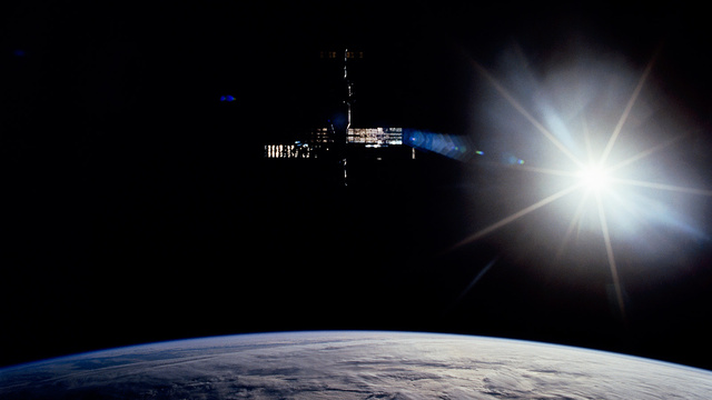 Ο Διεθνής Διαστημικός Σταθμός (ISS), σε μία λήψη από το Διαστημικό Λεωφορείο Discovery, κατά τη διάρκεια της αποστολής STS-119.
