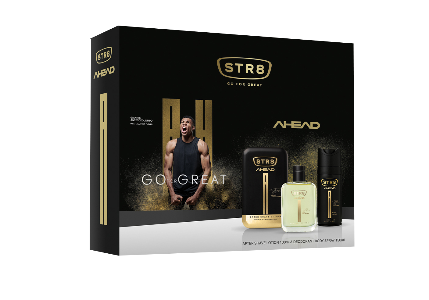 Τα φετινά STR8 giftsets έρχονται σε ένα κομψό, μεταλλικό μαύρο κουτί με το μοναδικό χειρόγραφο μήνυμα από τον ίδιο τον Γιάννη Αντετοκούνμπο “Never Give Up, Go For Great”. Μέσα θα βρεις ένα από τα μοναδικά αρώματα STR8 – Rise, Ahead,Original, Red Code & Hero,– σε ολοκληρωμένους συνδυασμούς που καλύπτουν τις ανάγκες σου όλες τις ώρες της ημέρας: Eau de toilette με deodorant body spray ή και shower gel. Σίγουρα θα βρεις αυτό που σου ταιριάζει – σίγουρα θα βρεις αυτό που ταιριάζει και στους κολλητούς σου.