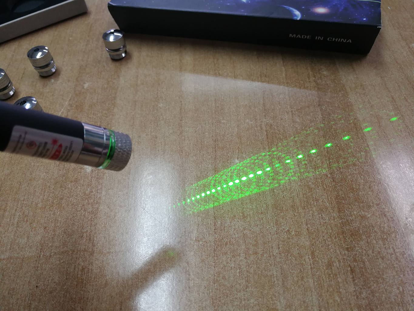 Το λέιζερ έχει ικανή ισχύ (<5mW) και μέσω των 5 διαφορετικών κεφαλών που θα βρείτε στη συσκευασία, μπορείτε να δημιουργήσετε εντυπωσιακούς σχηματισμούς σε οποιαδήποτε επιφάνεια, οι οποίοι σίγουρα θα ενθουσιάσουν τους γύρω σας, σε εσωτερικούς ή εξωτερικούς χώρους, ειδικά το βράδυ!