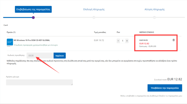 Η νέα τιμή θα εμφανιστεί αυτόματα. Κάντε κλικ στην Υποβολή παραγγελίας και επιλέξτε τον τρόπο πληρωμής σας.