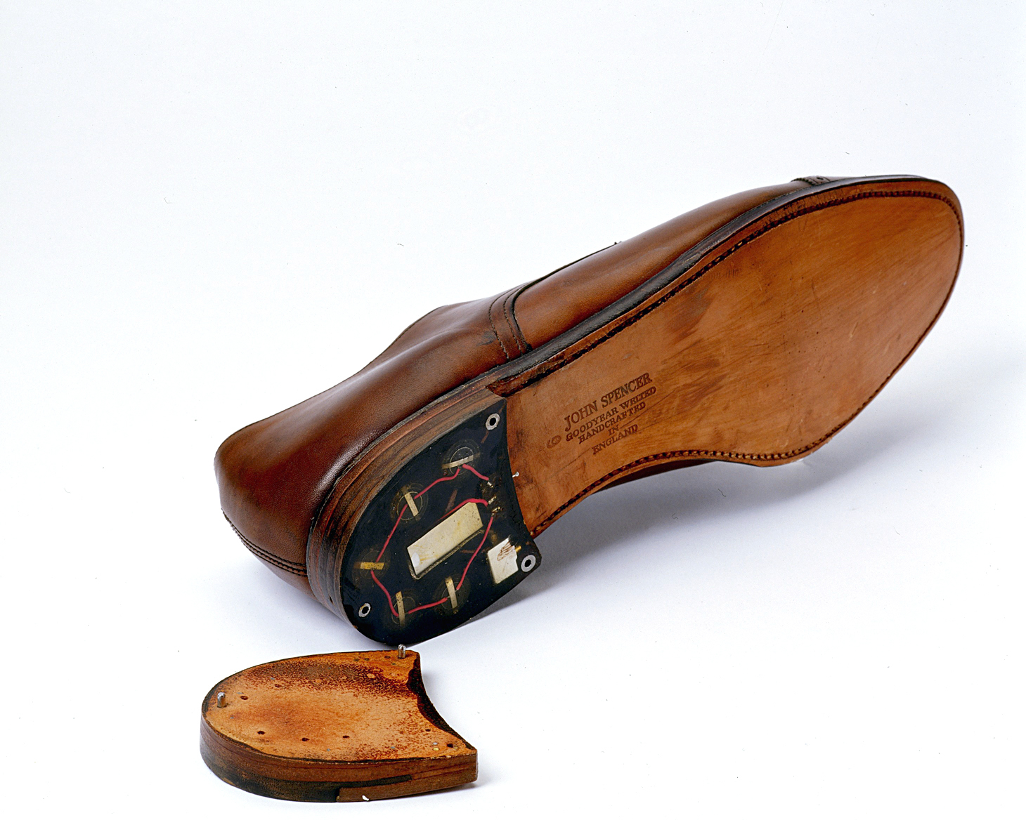 Τα κατασκοπευτικά παιχνίδια δεν ήταν μόνο για τις μεγάλες υπερδυνάμες. Αυτό το παπούτσι, που έχει κρυμμένο έναν πομπό μετάδοσης στο τακούνι του, χρησιμοποιούνταν από τη ρουμανική μυστική υπηρεσία τη δεκαετία του ’60 και ’70 για να κατασκοπεύσει τους Αμερικανούς διπλωμάτες. Οι διπλωμάτες δίσταζαν να αγοράσουν παπούτσια από την τοπική αγορά, έτσι τους τα έστελναν με το ταχυδρομείο από την πατρίδα τους. Εκεί σταματούσαν τα δέματα και εγκαθιστούσαν έναν πομπό στο τακούνι των παπουτσιών, ώστε να μπορούν να παρακολουθούν τις συζητήσεις τους…