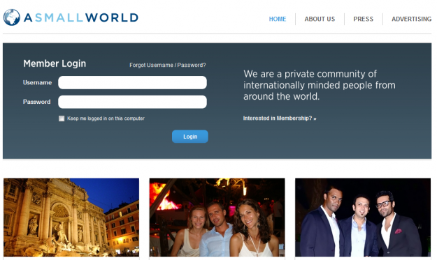 Για τους πλούσιους και διάσημους είναι όντως μικρός ο κόσμος. Φημολογείται πως περήφανα μέλη του aSmallworld είναι η Naomi Camber, η Paris Hilton και ο Quentin Tarantino. Αν θέλετε να γίνετε μέλη, κάποιος από αυτούς θα πρέπει να σας στείλει πρόσκληση, θα πρέπει να ανήκετε στο διεθνές οικονομικό στερέωμα ή το ευρύτερο star system, να έχετε τουλάχιστον ένα Master για το οποίο θα υπερηφανεύεστε στο βιογραφικό σας και πολλά λεφτά να ξοδεύετε. Γιατί; Γιατί στο aSmallworld θα βρείτε αρκετές αγγελίες για ενοικιάσεις σκαφών αναψυχής και ιδιωτικών τζετ, ή για βίλες σε τροπικούς παραδείσους, αλλά και προσκλήσεις σε ξέφρενα πάρτι με καλεσμένους μοντέλα, ηθοποιούς, δισεκατομμυριούχους και… όχι ανθρώπους σαν κι εμάς τους υπόλοιπους.