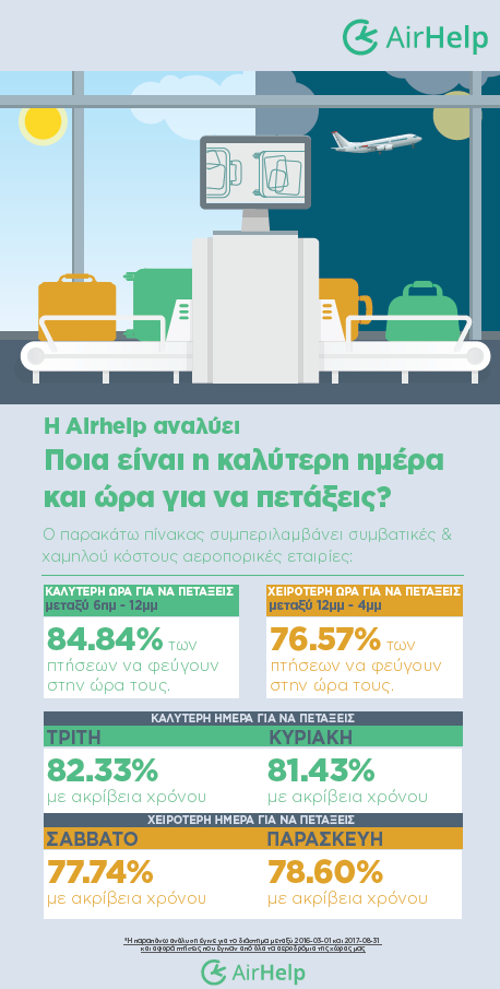 Η πρόταση της AirHelp για μεγαλύτερες πιθανότητες για ταξίδι με αεροπλάνο με ακρίβεια χρόνου. Σε αυτό συμπεριλαμβάνονται συμβατικές και χαμηλού κόσμους εταιρείες. Δείτε εδώ:
