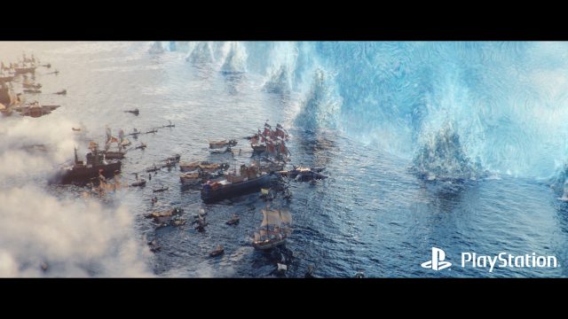 Στη συνέχεια η βάρκα βγαίνει από το σύννεφο. Όπως ο «παίκτης» κοιτάζει τριγύρω διερευνητικά, συνειδητοποιεί ότι μια σειρά από πειρατικές γαλέρες, πλοία των Βίκινγκ, διαστημόπλοια και αερόπλοια απλώνονται μπροστά του, σε αυτόν το άγνωστο προορισμό. Ένα διερευνητικό αεροπλάνο δημιουργεί αψίδες με το πέταγμά του στον ουρανό και βλέπουμε ότι αντί για τον καταγάλανο ωκεανό, μπροστά τους βρίσκεται μια μαγική μπλε «επιφάνεια» που «αψηφά» τη βαρύτητα – σαν να βρίσκονται στην άκρη του κόσμου!
