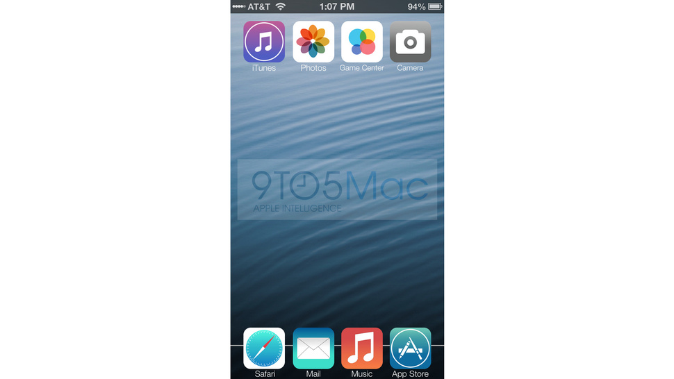 Η φωτογραφία δεν είναι screenshot του λειτουργικού. Είναι ένα mockup που έφτιαξε το 9to5mac εφόσον είχε στα χέρια του, για λίγη ώρα, μία συσκευή με την έκδοση iOS 7 και έβαλε τους γραφίστες του να το «αποδώσουν». Σύμφωνα με τις περιγραφές των συντακτών του, τα εικονίδια των εφαρμογών είναι επανασχεδιασμένα και όσο πιο flat γίνεται.